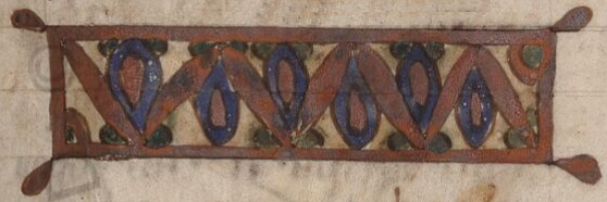 As you can see from the image, the figure of St. Ephrem occupies a capital D, which forms the first letter of the incipit: Dolor me compellit dicere et iniquitas. This incipit, together with the title (Here begins the First Book of the Blessed Effrem the Deacon of the City of Edessa) are in green and red majuscules, before transitioning to the black miniscule of the remainder of the text.